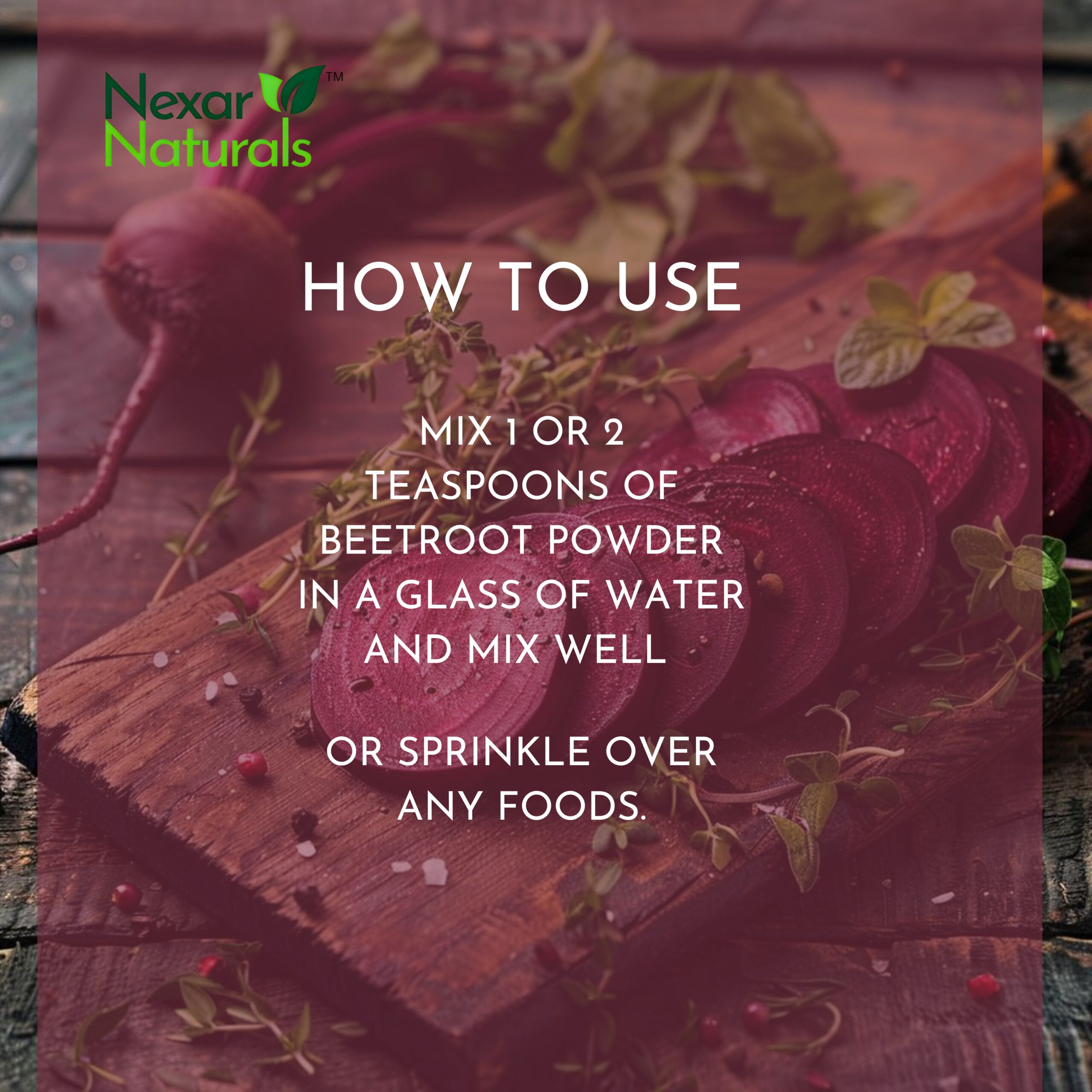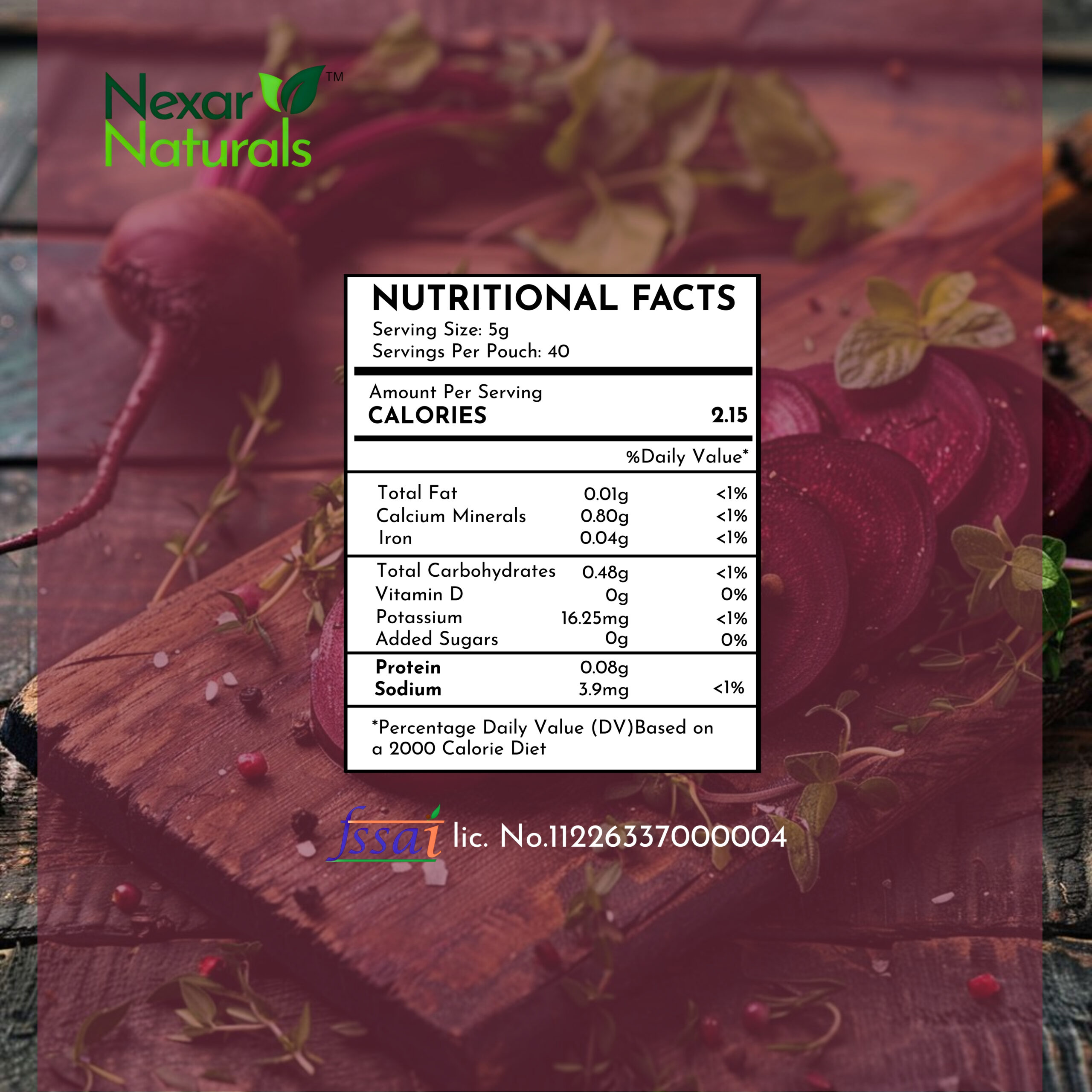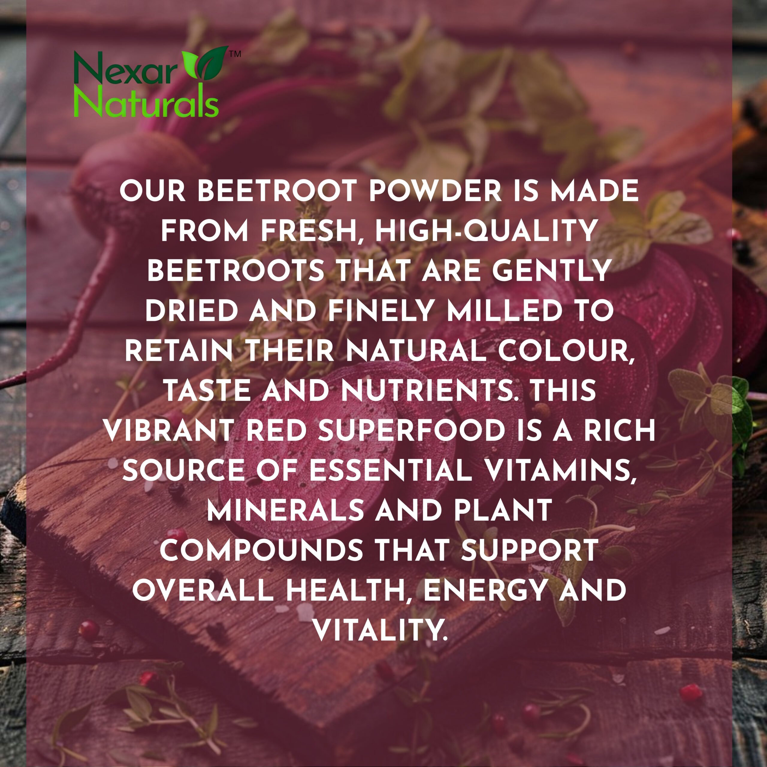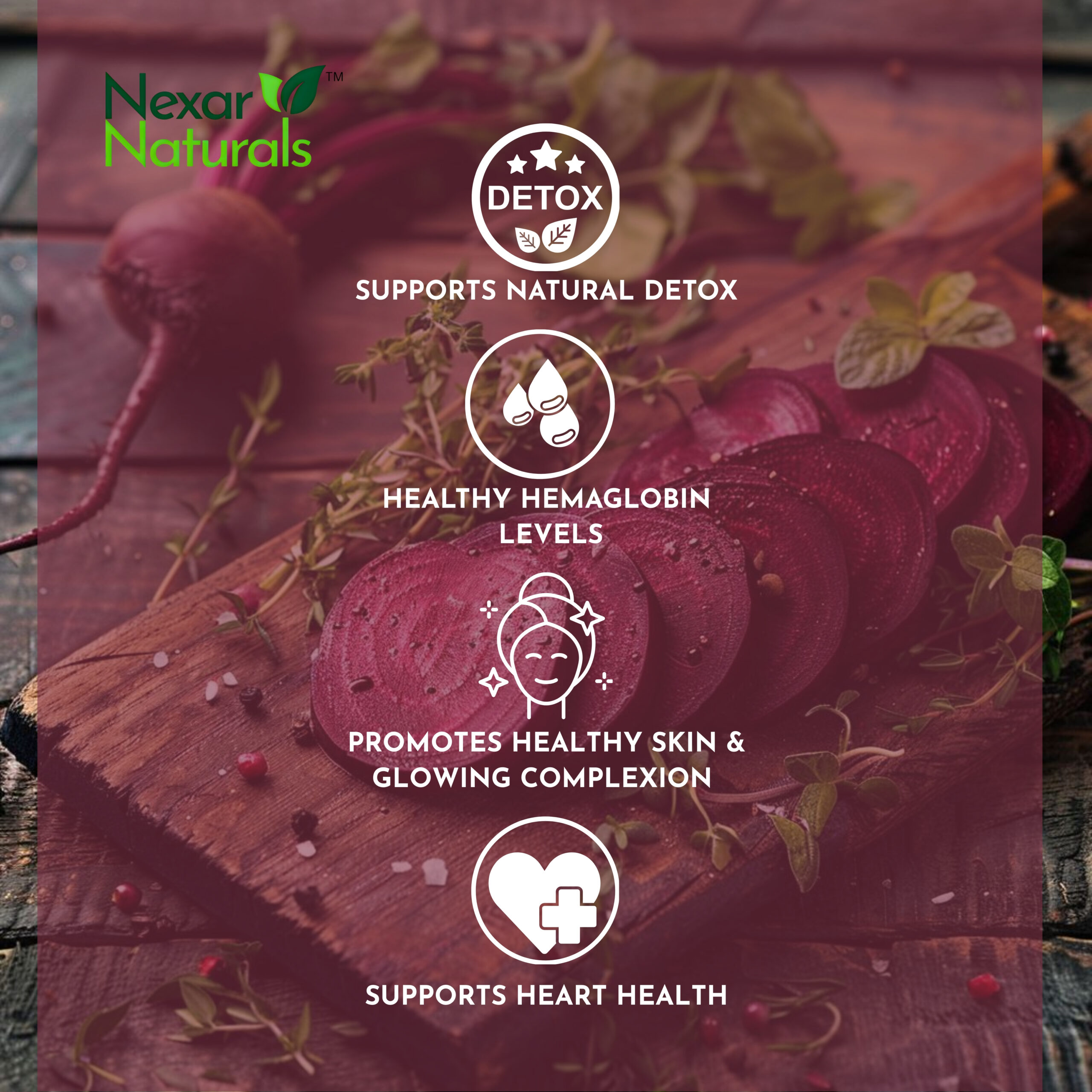 Made from carefully selected Beetroots and processed naturally to retain maximum purity and effectiveness.
