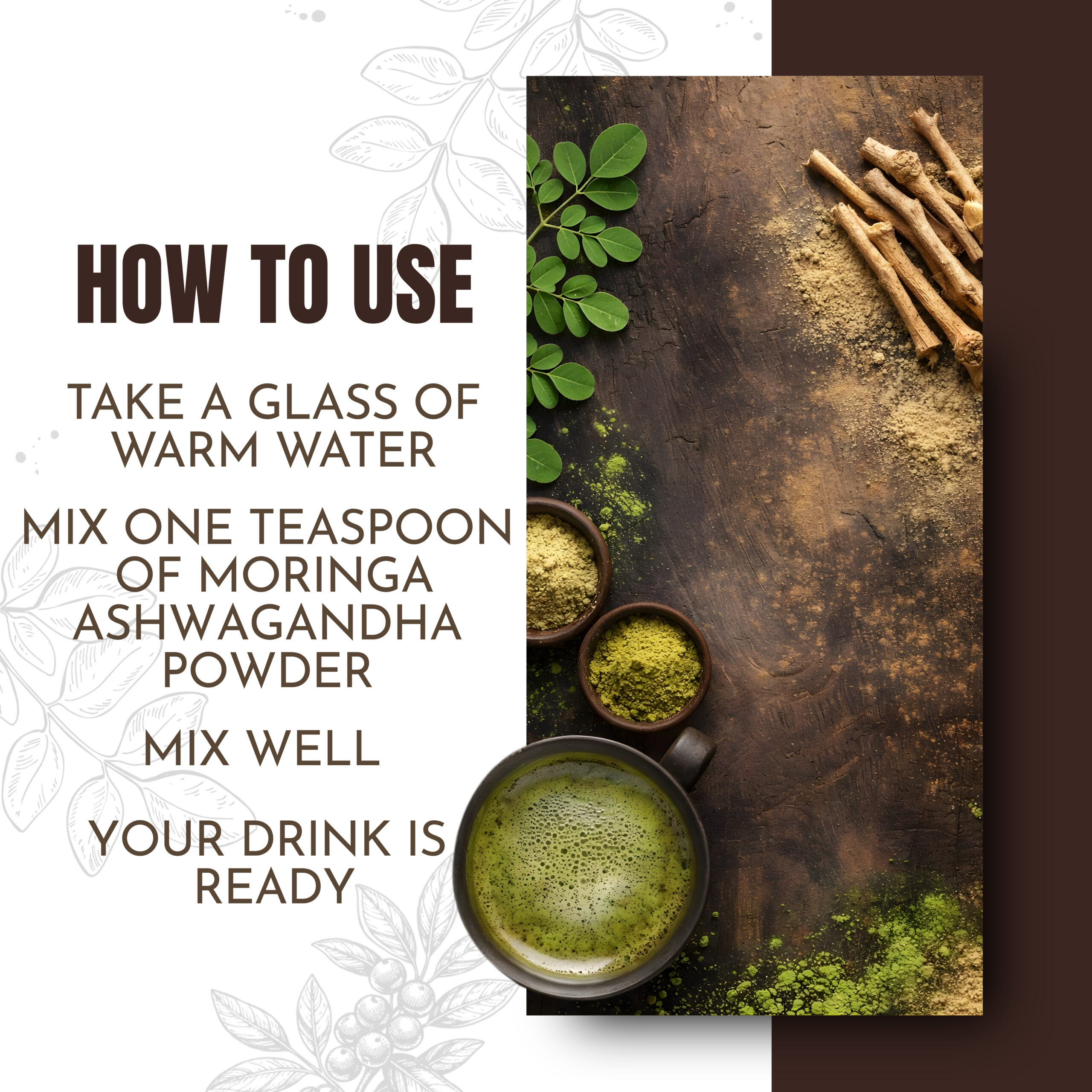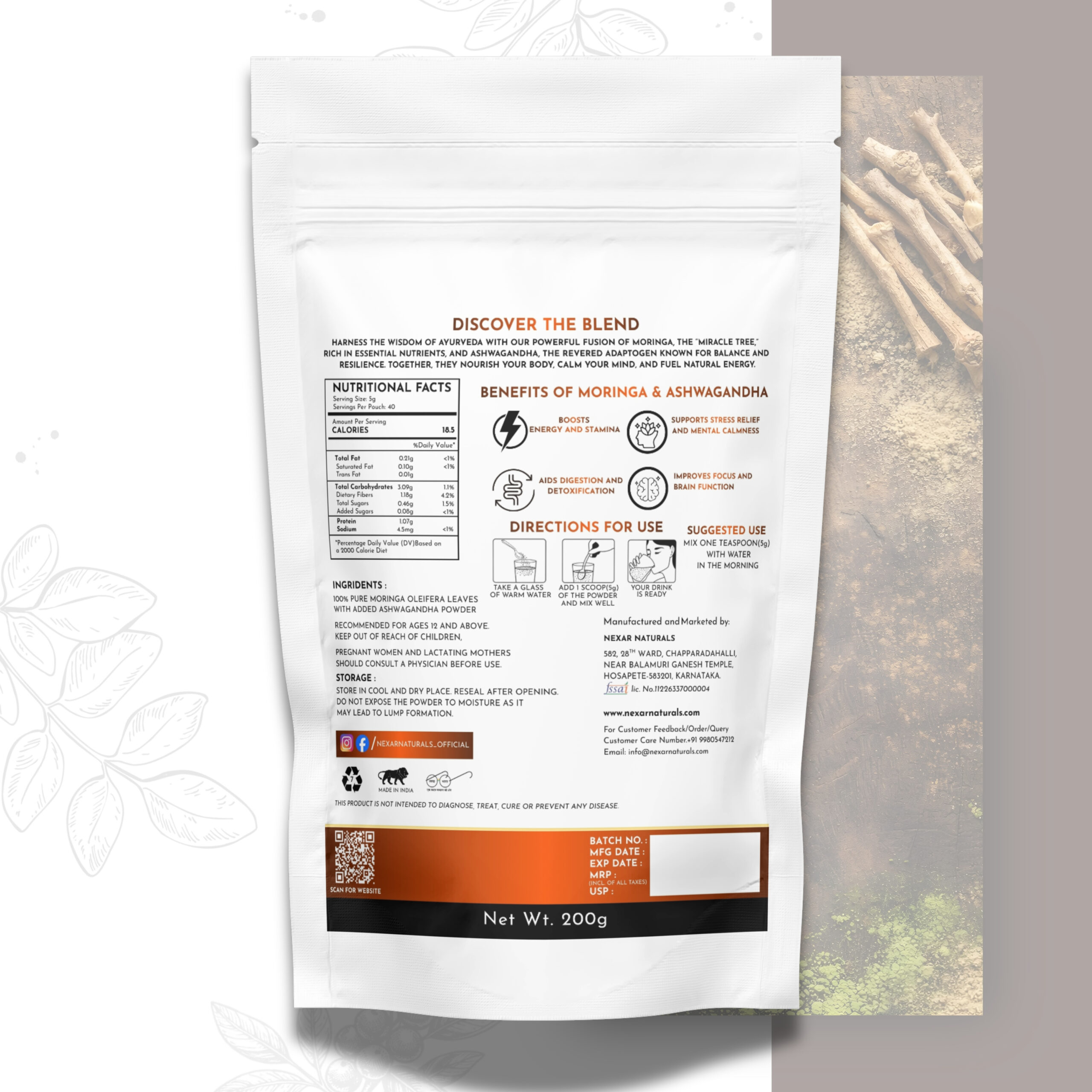 Our premium Moringa Ashwagandha Powder is a powerful herbal blend combining the nutrient-rich goodness of moringa leaves with the adaptogenic strength of ashwagandha root. Carefully sourced and finely ground, this blend supports daily vitality, stamina, and overall wellness.